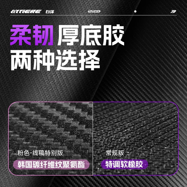 Phiên bản đặc biệt (viền hồng): Sử dụng polyurethane họa tiết sợi carbon Hàn Quốc, bề mặt sang trọng, độ đàn hồi cao, vừa thẩm mỹ vừa hiệu năng.