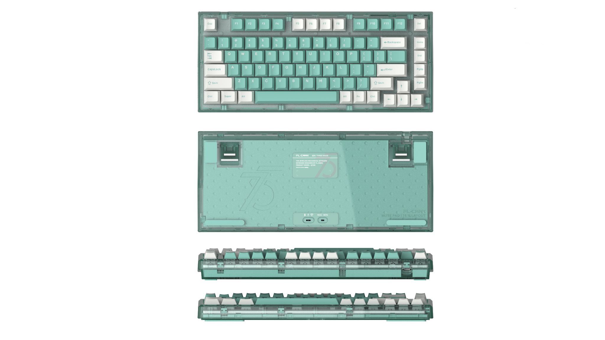 FLEsport Q75 có thiết kế phần vỏ case dạng trong suốt mang đến sự bóng bẩy và bắt mắt với người dùng ,FL sử dụng là Kailh jellyfish swich một loại swich mà hãng tự sản xuất cho những bàn phím cao cấp của mình .Thêm vào đó keycap sử dụng trên Q75BL là PBT cực kỳ, chống mài mòn va đập tốt .