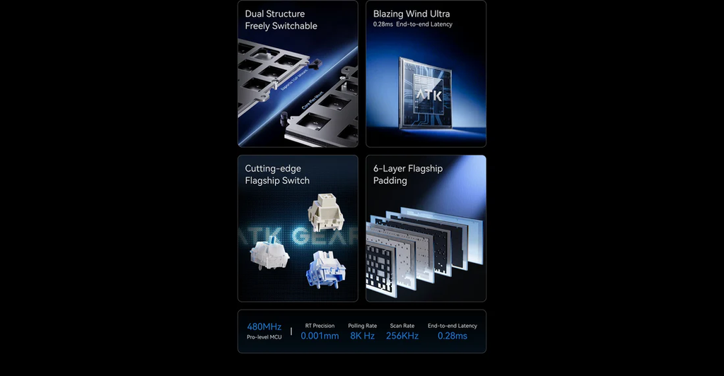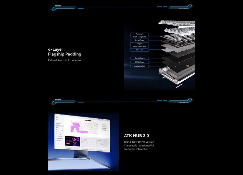 Với hệ thống plate và cấu trúc tối ưu chống rung, âm gõ của ATK RS7 V2 chắc, sạch và dễ chịu. Các lựa chọn màu sắc đa dạng cùng phiên bản Ultra nâng cấp cho phép người dùng tăng thêm độ cá nhân hóa qua vật liệu plate cao cấp hoặc keycap tùy chọn.