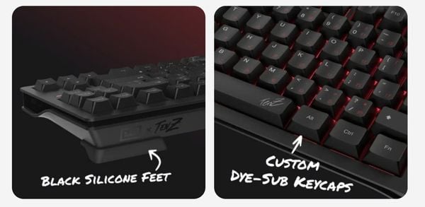 Bàn phím này được tinh chỉnh đến từng chi tiết theo sở thích của TenZ. Công tắc tùy chỉnh với lò xo dài hơn cho khả năng điều khiển tốt hơn , Tấm nền FR4, và phím được cải tiến tốt hơn
