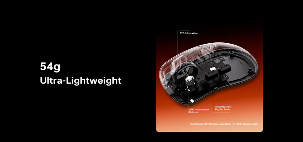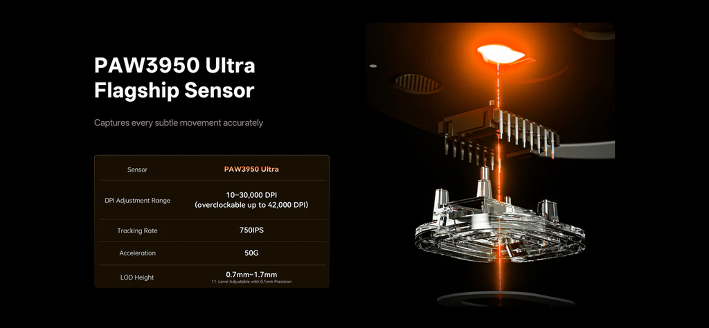 Trang bị cảm biến PAW3950 Ultra – dòng cảm biến cao cấp chuyên dùng cho chuột gaming hiệu năng cao: