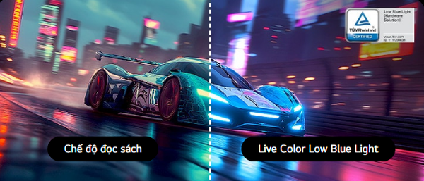 Công nghệ Live Color Low Blue Light đã đạt chứng nhận TÜV Rheinland, giúp giảm mỏi mắt khi chơi game lâu mà vẫn giữ được màu sắc tươi sáng, rực rỡ.