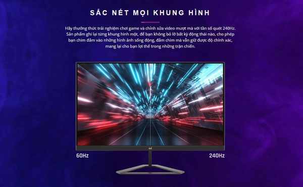 Tần số quét cực cao 240Hz đảm bảo mọi chuyển động đều mượt mà và sắc nét. Dù là game thủ Esport cần độ phản hồi nhanh hay người sáng tạo nội dung đang biên tập video, bạn đều có thể tận hưởng độ chính xác hình ảnh tuyệt vời, không bỏ sót bất kỳ khoảnh khắc quan trọng nào.